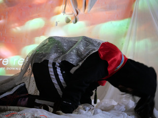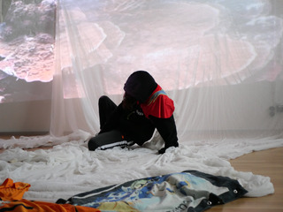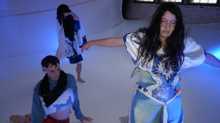 With the project Meluzine & Cie (Spending time with mermaids), Lea Kieffer (aka Meluzine Codex Mercury) dedicated the Berlin residency to the recurrent figure of her work in the past year: the cosmic mermaid. In company with other artists/creatures, such as dancer/drummer Ángela Muñoz Martínez (aka Jupiter Sonic Smith), dancers Frida Guilia Franceschini ( aka Morticia Moon X) and Rocio Marano ( aka Yawna Galactica), musician Nina Hynes (aka Vulna Zinazia), dancer/ writer Timothée Nay (aka Colin Danger) and punctual guests, Lea Kieffer aimed to awaken their inner mermaid and explored in the frame of the Berlin residency movement-voice connections, song writing, storytelling, lapdancing, somatic shapeshifting, apnee and growing tail training, as well as build aquatico-cosmic landscapes and costumes made of shells, sea creature prints from 90’s recycled sheets, neon-lights sculptures and other found treasures.